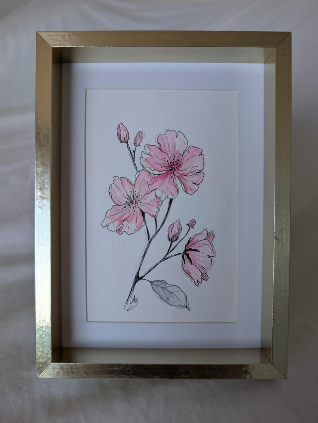 Original encadré à l'aquarelle • Fleurs de cerisier roses
