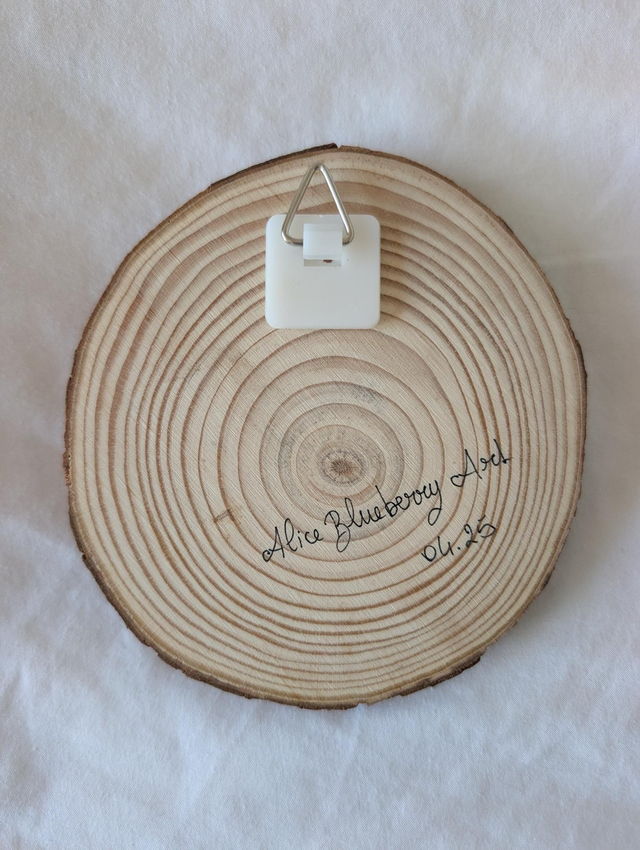 Peinture originale de glycines à l'acrylique sur un rondin. Vendue avec une accroche murale au dos.