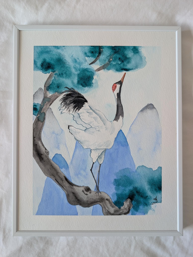 Original réalisé à l'aquarelle japonaise Kuretake Gansai Tambi. Vendue encadrée dans un cadre blanc sobre pour mettre en valeur la légèreté du sujet.